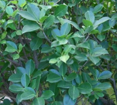 - 잎: 크고 두꺼우며 타원형 또는 긴 타원형입니다. 잎 표면은 짙은 녹색으로 광택이 있고, 어린잎은 붉은빛을 띠는 얇은 막으로 덮여 있다가 점차 벗겨집니다.