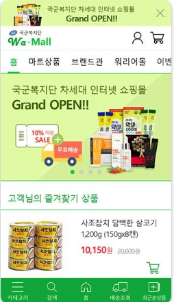 국군복지단 와몰의 장점은 배송비 없이 군마트(PX)와 계약된 다수의 제품을 구매할 수 있습니다.