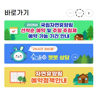 - 모바일 앱: 숲나들e 모바일 앱을 이용하면 더욱 편리하게 예약하고 정보를 확인할 수 있습니다.