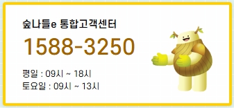 - 숲나들e 고객센터: 1588-3250(평일 : 09:00~18:00, 토요일 09:00~13:00)