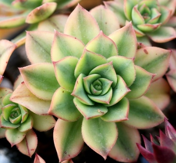 - 에케베리아 (Echeveria): 로제트 형태로 자라며, 꽃처럼 아름다운 잎 모양이 특징입니다. 다양한 색상과 무늬를 가지고 있어 인기가 많습니다. (예: 룬데리, 흑법사, 먼로, 립스틱)