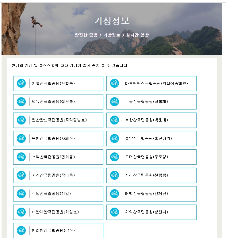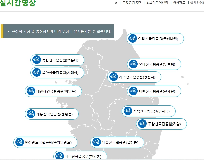 - 대부분의 국립공원 홈페이지에는 실시간 CCTV 메뉴가 따로 마련되어 있습니다.