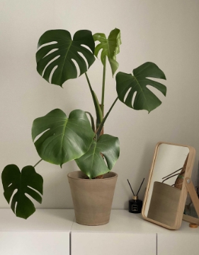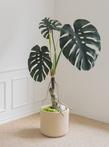 - 몬스테라의 독특하고 큼직한 잎은 실내에 싱그러운 분위기를 연출합니다.