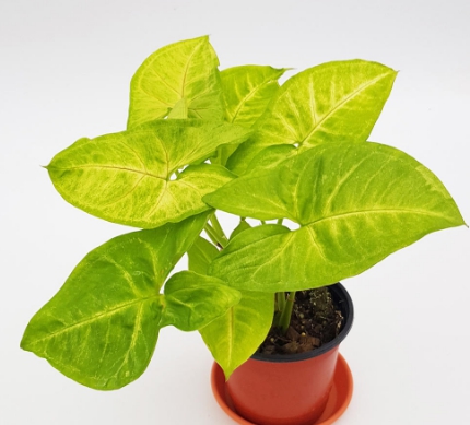 - 네온 싱고니움 (Neon Syngonium): 밝은 라임색 또는 황금색을 띠는 잎이 특징입니다. 화사하고 밝은 느낌을 줍니다.
