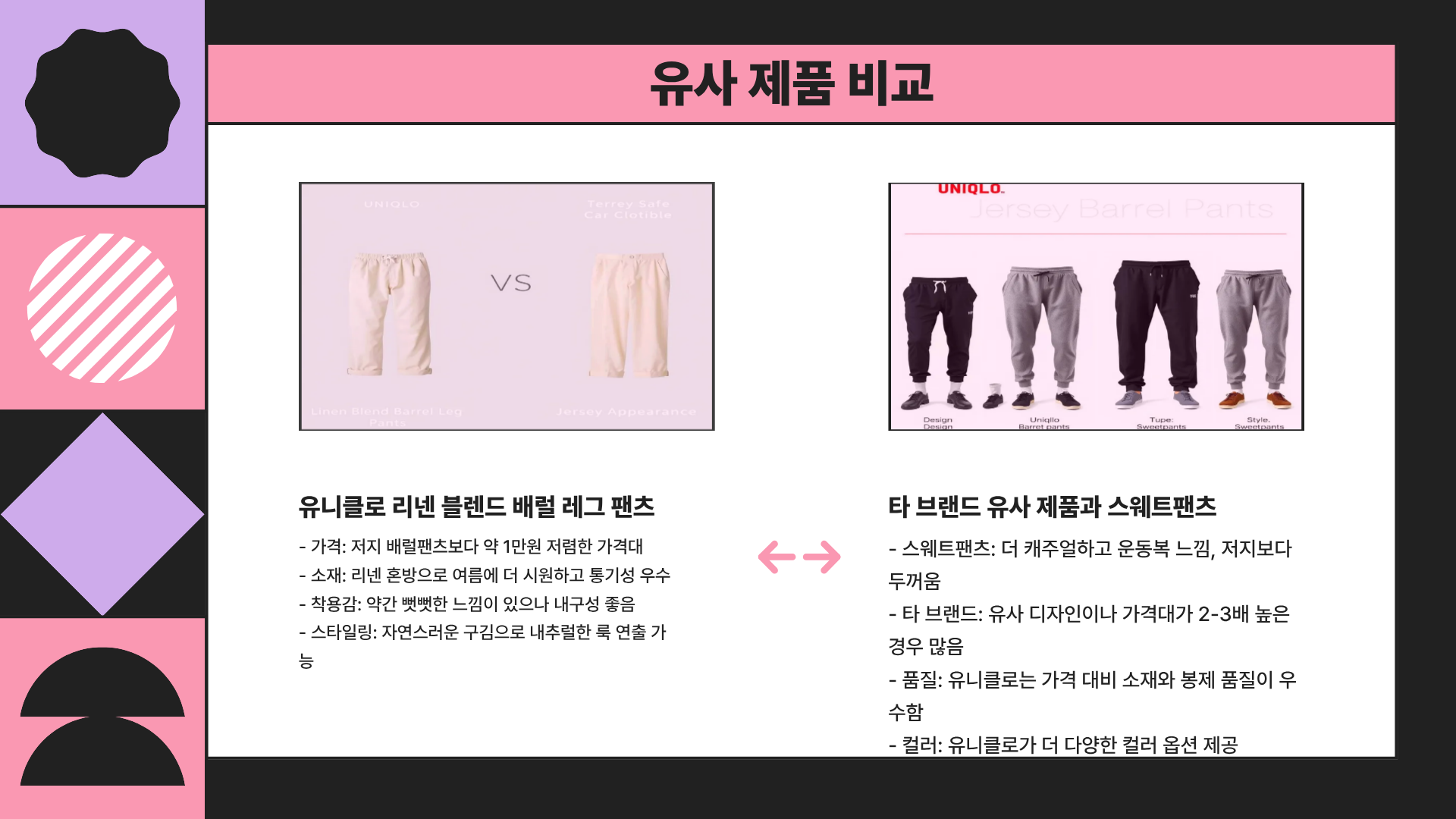 유니클로 저지 배럴 팬츠 : 구매 결정 요약표