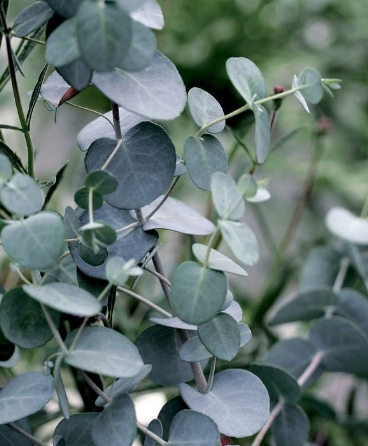 - 유칼립투스 시네리아 (Eucalyptus cinerea): 둥글고 납작한 잎이 가지에 다닥다닥 붙어 있는 형태가 특징입니다.