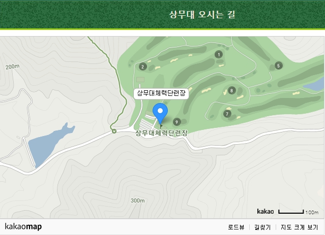 - 상무대 : 전라남도 삼서면 태청로428번지 사서함75-5호 대표전화 (프론트) : 일반) 061-350-2532-2533
