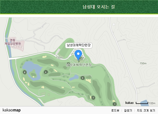 - 남성대 : 충북 영동군 양강면 양정죽촌로69 대표전화 (프론트) : 군) 896-6900(ARS:2번), 일반)043-745-1703