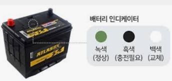 - 배터리 인디케이터(점검창) 확인: 대부분의 배터리 상단에는 동그란 점검창(인디케이터)이 있습니다.