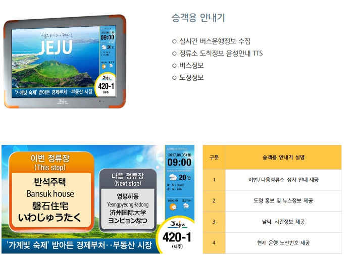 - 버스 이용자들에게는 각종 매체(정류소 안내기, 인터넷, 휴대폰 등)를 이용하여 버스도착예정시간, 버스위치정보 등을 제공하는 신개념 대중교통 시스템입니다.