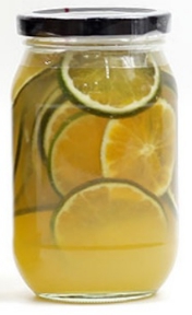 - 청귤 담기: 열탕 소독한 유리병에 슬라이스한 청귤을 차곡차곡 담습니다.