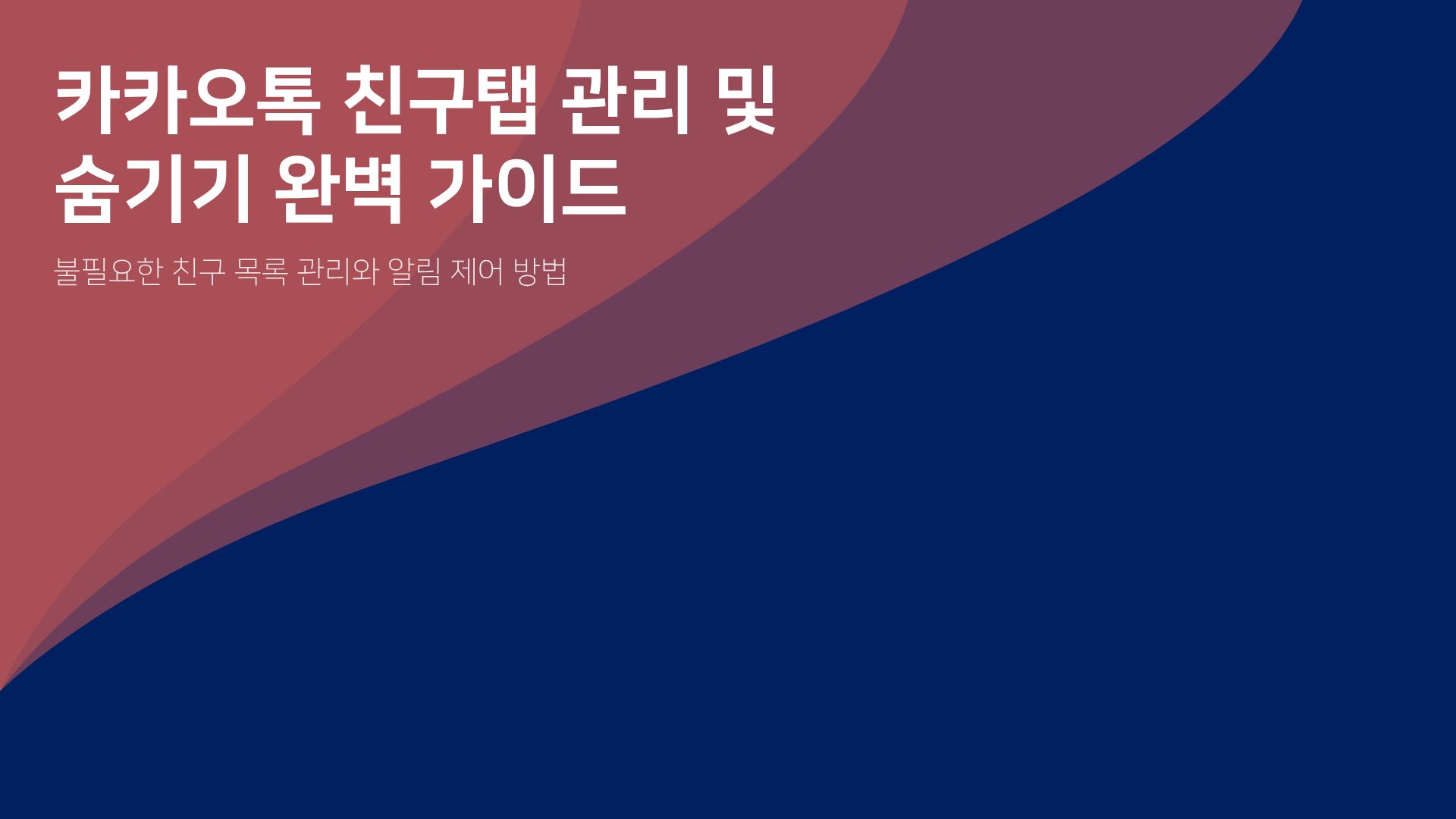자, 이제 더 이상 스트레스받지 마십시오. 당신의 카카오톡은 당신의 통제하에 있어야 합니다. 스크롤을 올려 본문 내용을 확인하시고, 스마트폰을 들어 1번 설정부터 순서대로 적용하십시오. 당신의 친구탭이 깔끔하게 정리되는 순간, 카카오톡 사용에 대한 만족도가 극적으로 올라가는 것을 경험하게 될 것입니다. 지금 바로 행동하세요!