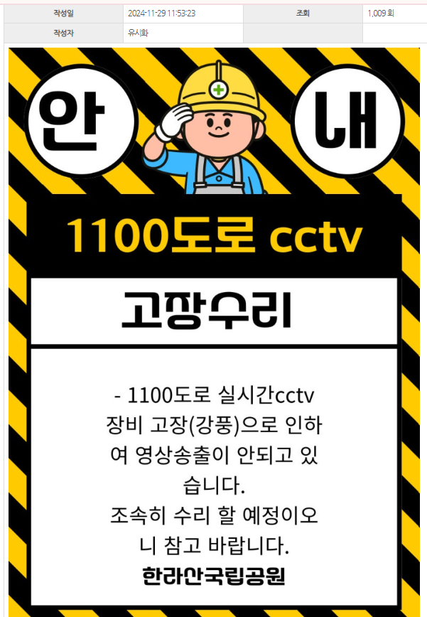 - 메뉴 찾기: 홈페이지 내에서 '실시간 CCTV', '현장 영상' 등과 같은 메뉴를 찾습니다. 보통 메인 화면 상단이나 하단에 위치해 있습니다.