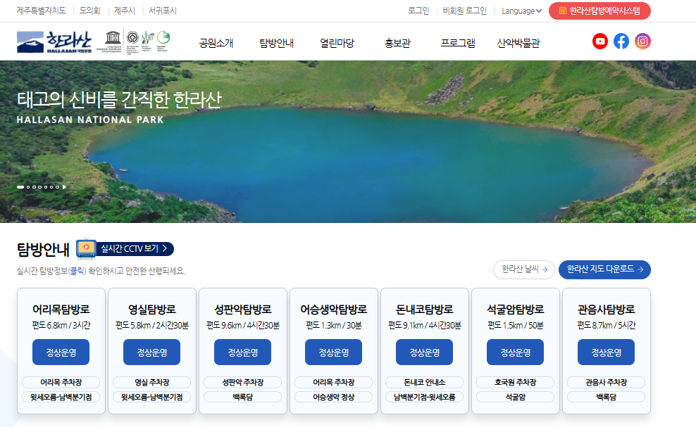 - 접속 방법: 한라산 국립공원 공식 홈페이지에 접속합니다.