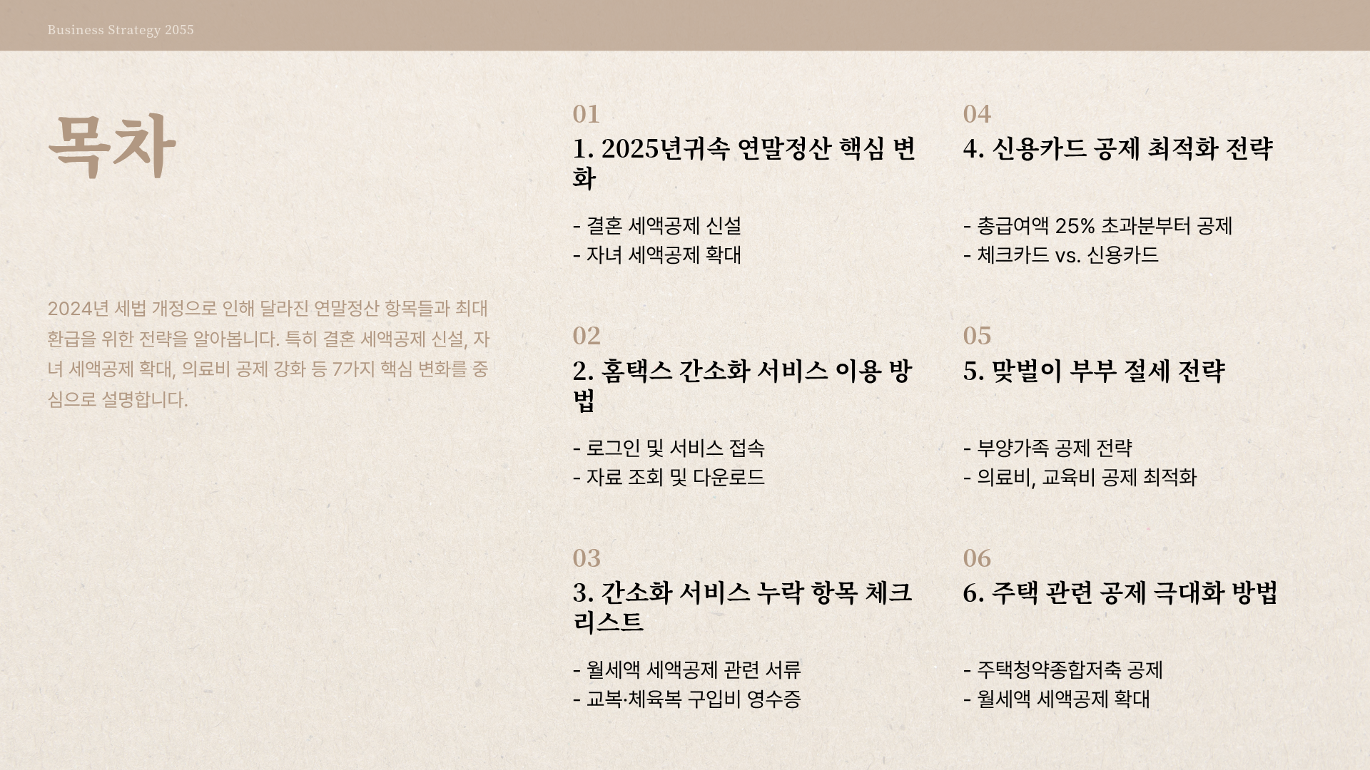2025년귀속 홈택스 연말정산의 핵심 공제 항목과 변경된 내용을 한눈에 비교할 수 있도록 정리했습니다. 최대 환급을 위한 최종 점검에 활용하세요.