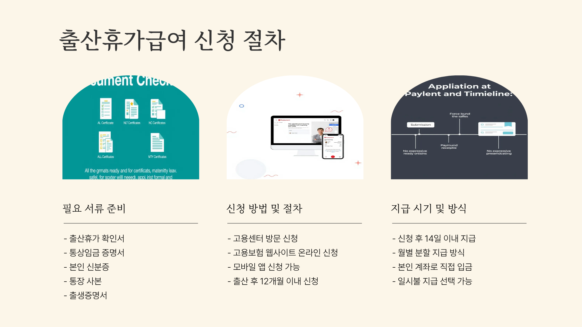 출산휴가급여 상한액 월 220만원 혜택을 온전히 받기 위해서는 정확한 신청 절차와 필요 서류를 미리 숙지하는 것이 중요합니다.