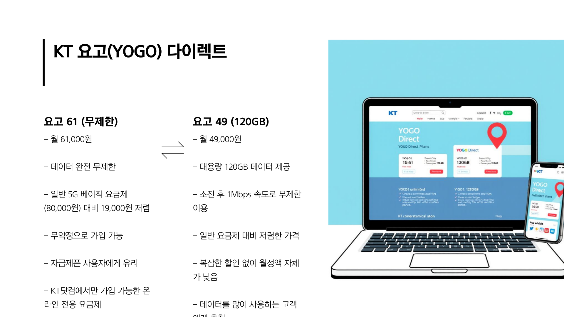 - 요고 49 (120GB): 월 49,000원에 대용량 데이터 제공
